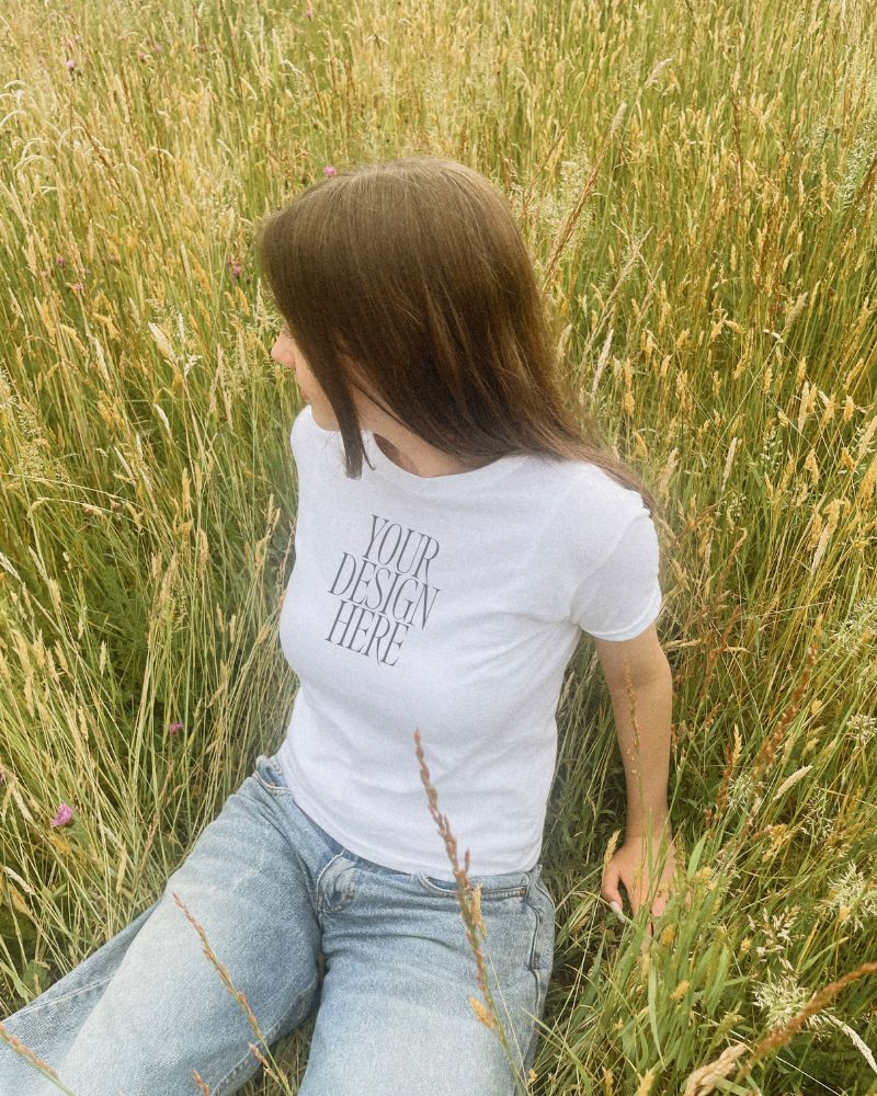 Baby Tee Mockup | White Gildan 5000B in Wild Meadow