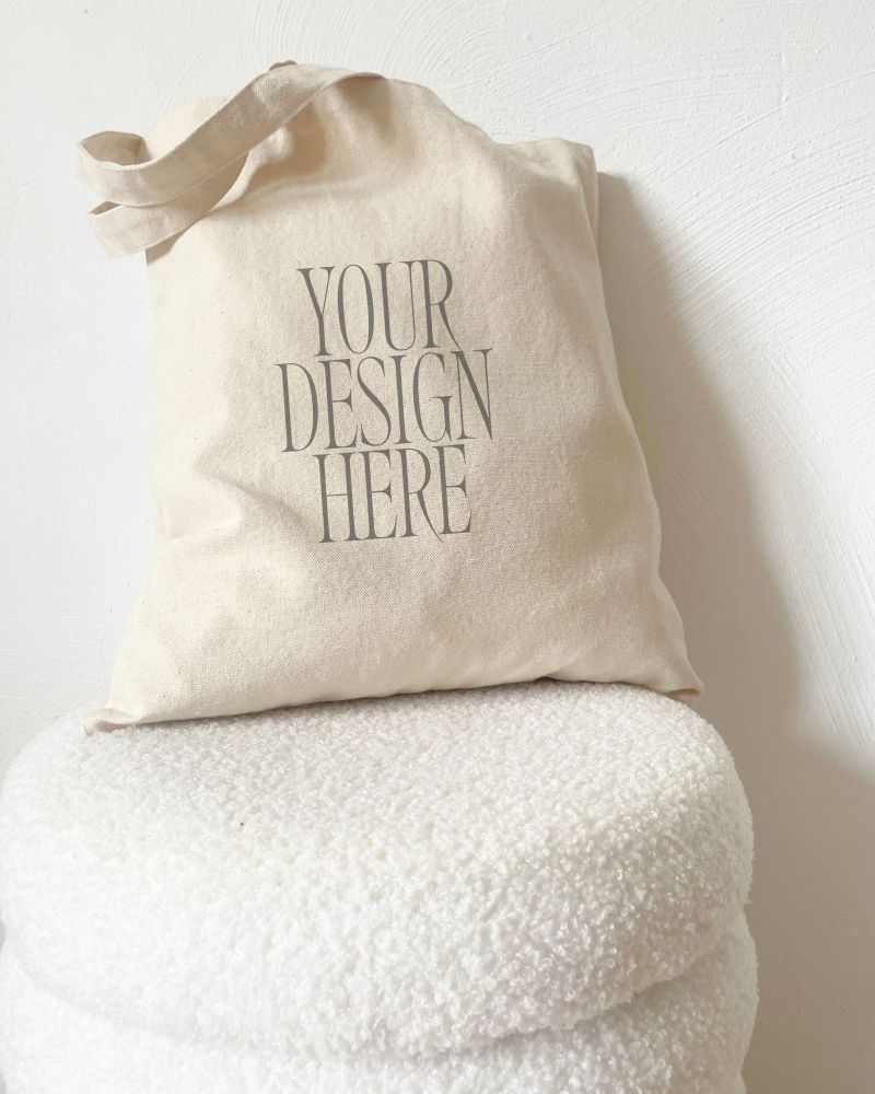 Refined Tote Bag Mockup | Styled on Bouclé Stool