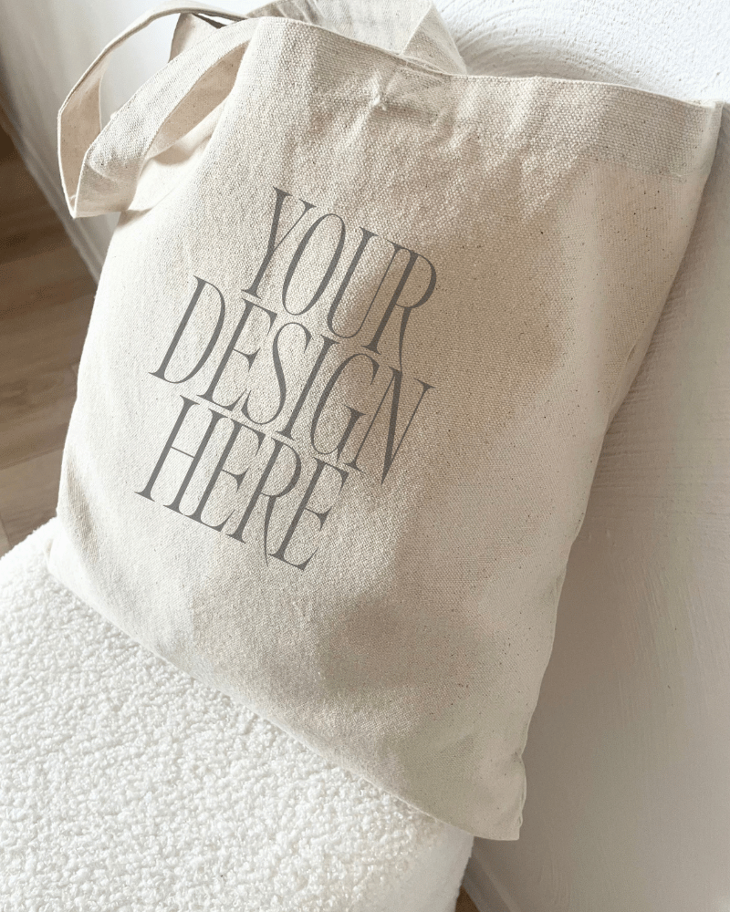 Tote Bag Mockup – Relaxed Drape on Curved Seat – Natural Lighting