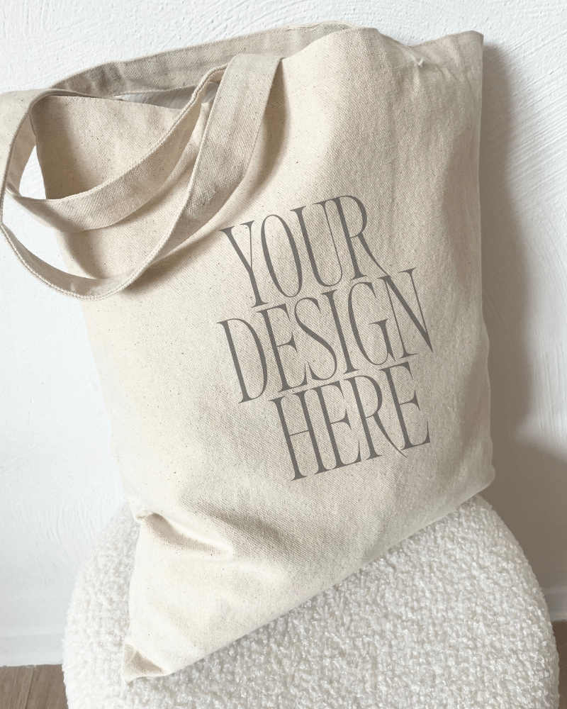 Tote Bag Mockup – Soft Drape on Curved Seat – Minimal Studio Light